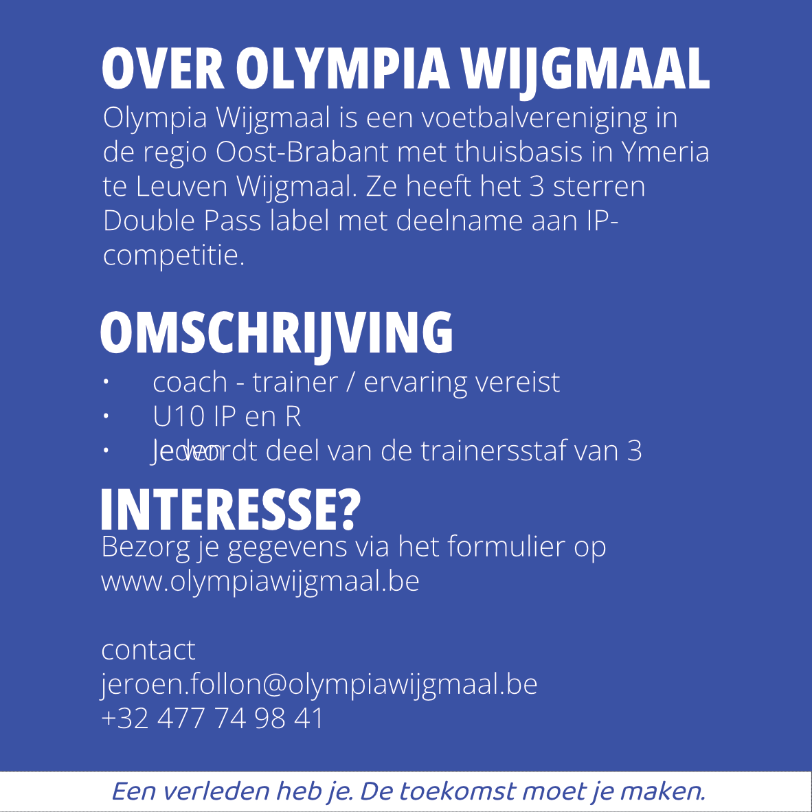 We willen dat iedereen met veel plezier bij Olympia Wijgmaal voetbalt en blijft voetballen. Allen op eigen niveau; de een meer recreatief en de ander meer prestatief.
